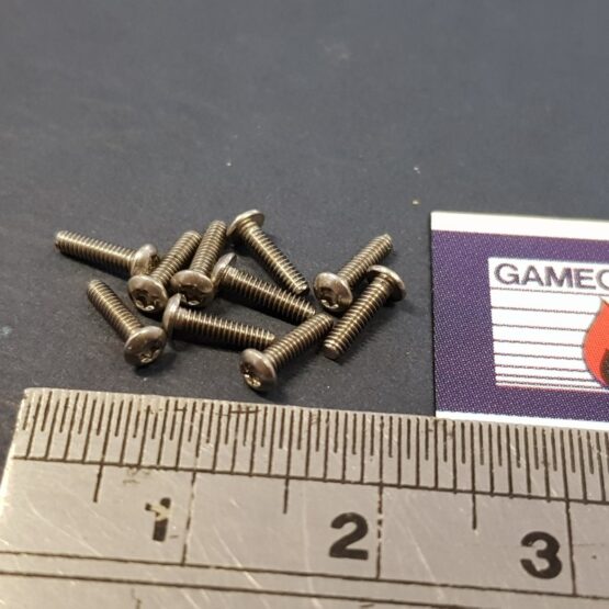 Pack of 10 stainless steel screws, 0-80 thread, button head, Torx socket, 1/4″ long.