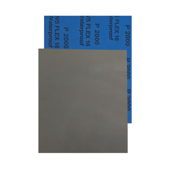 Hermes WS Flex 16 Wet and Dry Sandpaper. Available in 4 grits: 2000, 2500, 3000, and 5000 grit; and in packs of 5 or 25 sheets.