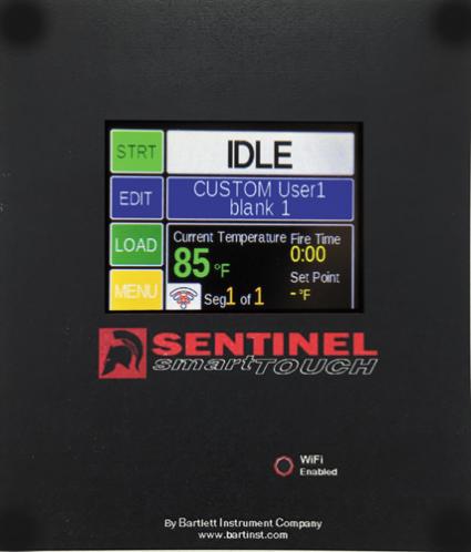 - Touch screen Bartlett controller with WiFi enabled. These controllers are the very latest in digital control that allow you to easily and intuitively program your kiln. The display can show firings as a table or graph and can be used to control external devices such as inert gas solenoid valves to ensure you are only using gas when the internal temperature requires it.