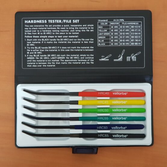 A set of 6 Swiss-made Vallorbe® hardness test files, a must-have for all knife makers, mechanical workshops and maintenance work.