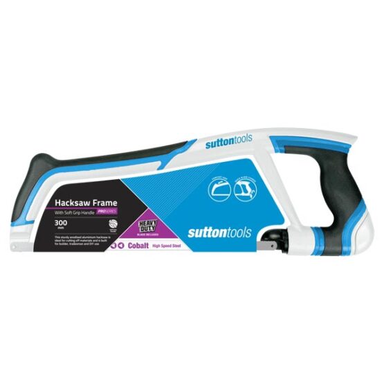 Sutton Hacksaw Frames are professional, ergonomically designed for two handed operation, and constructed from sturdy light-weight anodised aluminium. Featuring very high blade tension for straight, accurate and exact kerfs. The spring tensioned blade loading mechanism allows quick blade changes. This hacksaw is supplied with one of Sutton’s Cobalt HSS blades, so you can start cutting straight away. The blade is centred for correct balance and better control. Ideal for professional tradesman and DIY use.