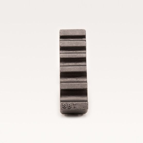 Artist blacksmiths sometimes require a tool that will allow metal to be formed in ways that an anvil or traditional industrial swage block will not allow. We developed swage blocks that are individual and easy to handle that can be held in a vise. No more searching for the heavy expensive swage blocks, or having to manhandle one. This swage block is 6″ long and 2″ wide and has 5 forming radius’. The width of each radius is 3/8″- 1/2″-5/8″-3/4″and7/8″. This is a very useful tool. The swage is made of tough 60/45/15 ductile iron. The tool has a 3/4” bar on the underside to use on your post vise or modify to use on your anvil. The swage is used by blacksmiths and tinsmiths to form round stock for tenons etc. These swages have been produced for many years and have proven to be very reliable and useful. We have 3 different varieties of swage blocks products used in the trade of blacksmiths so feel free to browse our inventory. Casting weighs approx.7 lbs. Made in the usa!