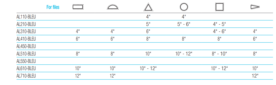 Vallorbe Crocodile Bleu Tang Biters File Handles. Available in 9 sizes to suit all different sizes of files.